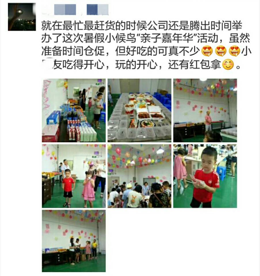 每年暑假的這個(gè)時(shí)候,正是制造企業(yè)一年當(dāng)中最為繁忙的時(shí)候,適逢小候鳥們赴深與父母共聚歡樂時(shí)光的季節(jié),雅香麗化妝用品(深圳)有限公司董事長林董認(rèn)為,員工不只是家之棟梁,更是企業(yè)之根本,再忙,也要抽出時(shí)間來為員工舉辦一場有聲有色的親子嘉年華活動(dòng)。此舉盡顯大企業(yè)家博愛風(fēng)范!