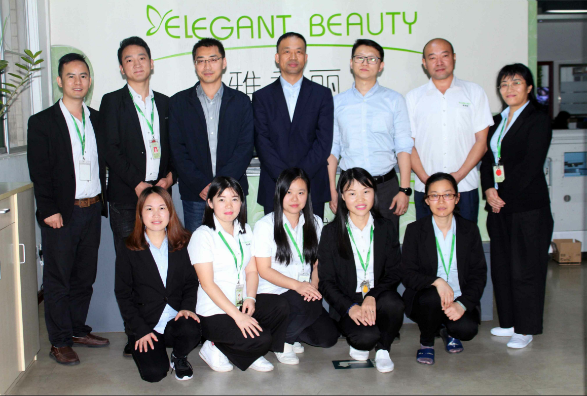圖為雅香麗(深圳)化妝用品有限公司干部與中知(北京)認證有限公司質(zhì)檢老師合影留念