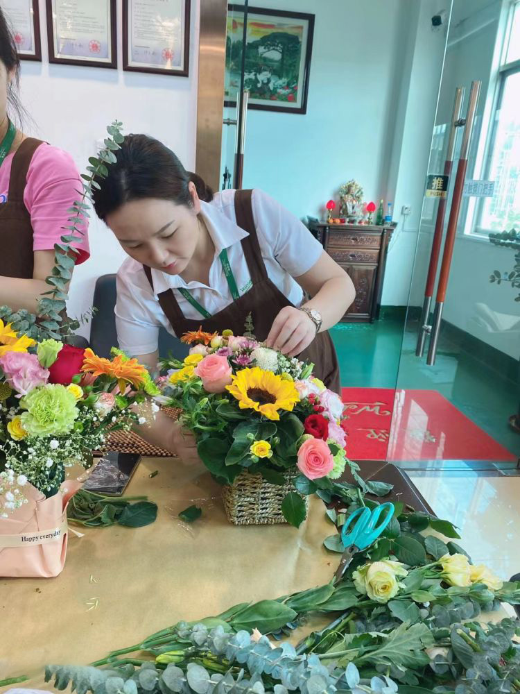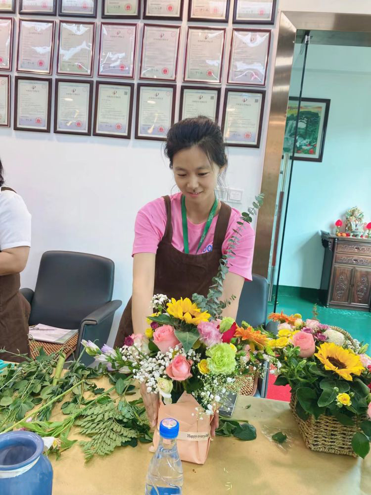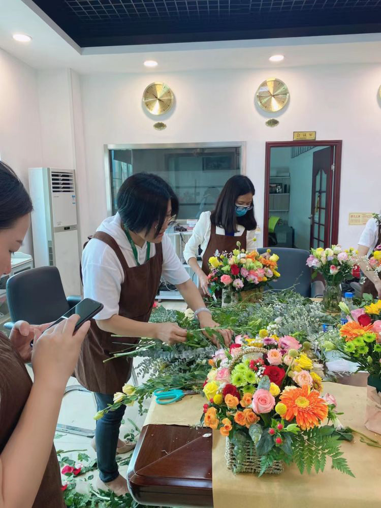 雅香麗化妝用品(深圳)有限公司 邀請專業(yè)插花師為員工講解插花技巧 關(guān)愛員工的生活與工作 快樂工作 快樂生活~