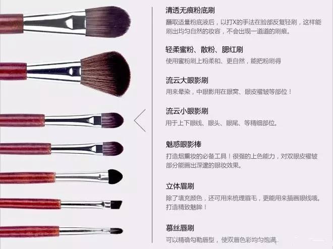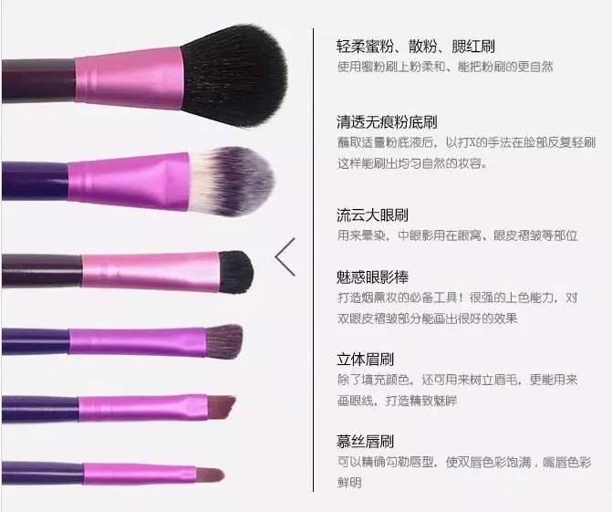 化妝刷是我們常用的化妝工具,尤其是彩妝使用化妝刷才能夠化出即快速又好看的妝,但是由于化妝刷套裝的模樣大同小異,只不過是形狀和大小有小小區別,對于新手來說區分化妝的用途簡直是噩夢。那么怎樣才能記住化妝刷的用途呢,下面小編為大家詳細介紹一下。
