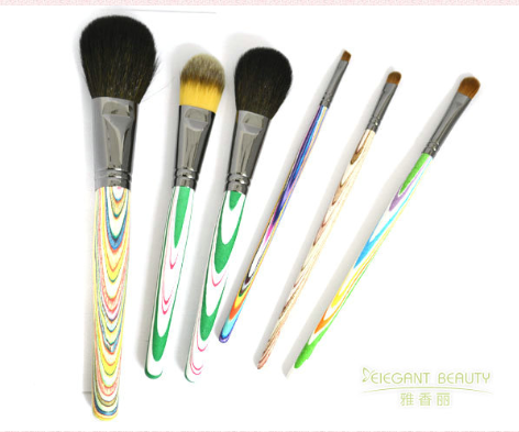 動物毛的刷子的彈性很好,抓粉力強,暈染能力很好,化妝的效果是好的。但它多多少少會有些扎臉,使用起來沒有那么親膚。抓粉力越強暈染力越好的刷子,一定是有點扎臉的。市面上常見的幾種動物毛包括馬毛、灰鼠毛、松鼠毛、和山羊毛。其中山羊毛是最普遍的一種化妝刷材料,細分成粗光峰,中光峰,細光峰,白尖峰,黃尖峰。根據之前的毛峰原理,細光峰羊毛是最高檔的,相對于其他品質,毛發(fā)更細更柔,其天然毛發(fā)的毛鱗片又使它抓粉力強,是羊毛化妝刷中的極品,價格也較高。馬毛是動物毛中抓粉力最強,但是膚感最差的,因為毛質較硬,比較扎臉。灰鼠毛和松鼠毛則柔軟,屬于高級毛,抓粉力相對馬毛和羊毛較弱,但是日常化妝足夠。此外還有狍子毛,狐貍毛等高級毛,都是可以用來做化妝刷的,不過這些產品成本較高,賣的價格也比較昂貴,化妝效果與之前提到的幾種常見無明顯差異。